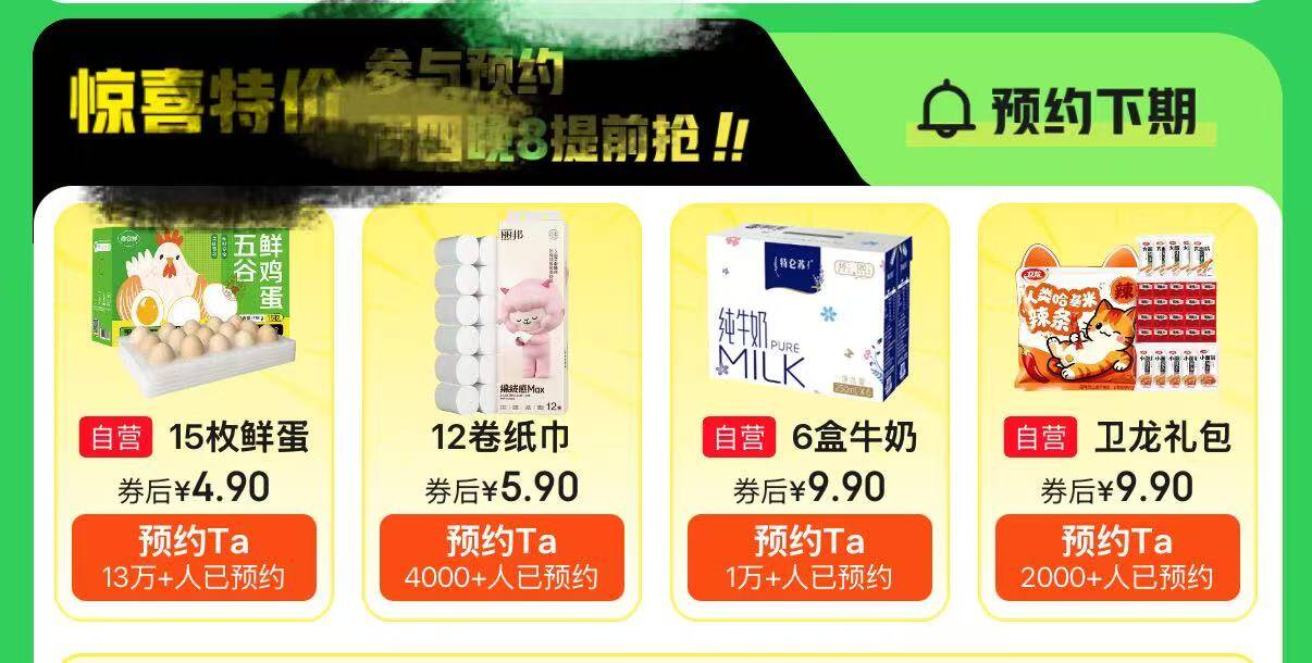 20点先予约 4选1 4.9亓15枚鸡蛋/埢纸牛奶等