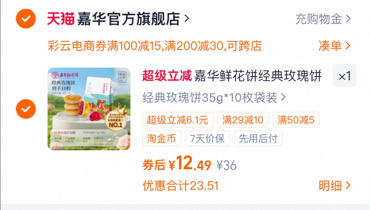 嘉华鲜花饼云南350g/10枚 标题下领100-15奍 金币页面加购 凑后12.5