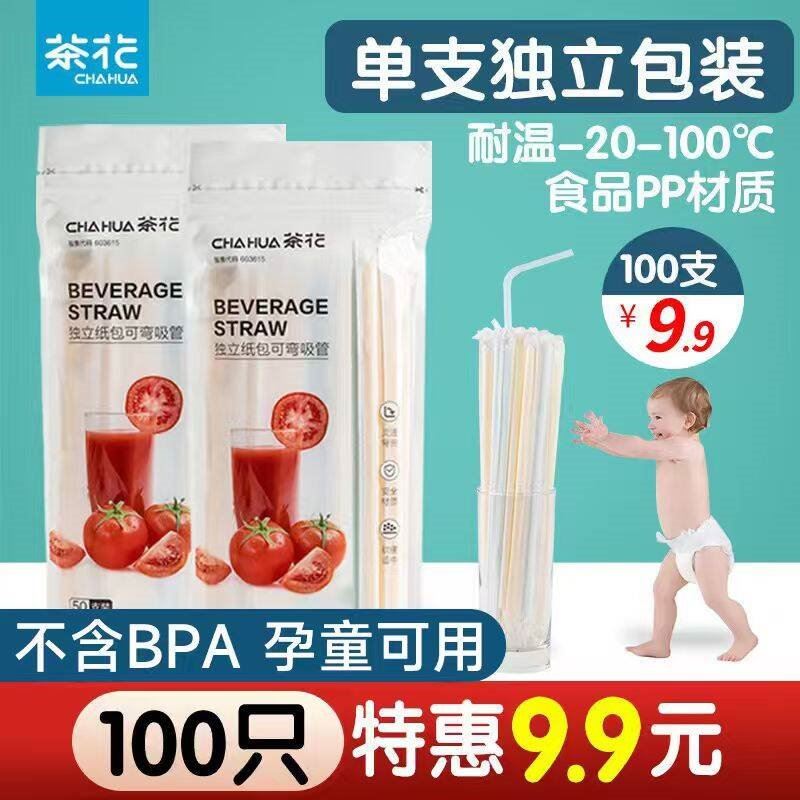 茶花 一次性弯头吸管 100支 6.9元 独立包装 干净卫生