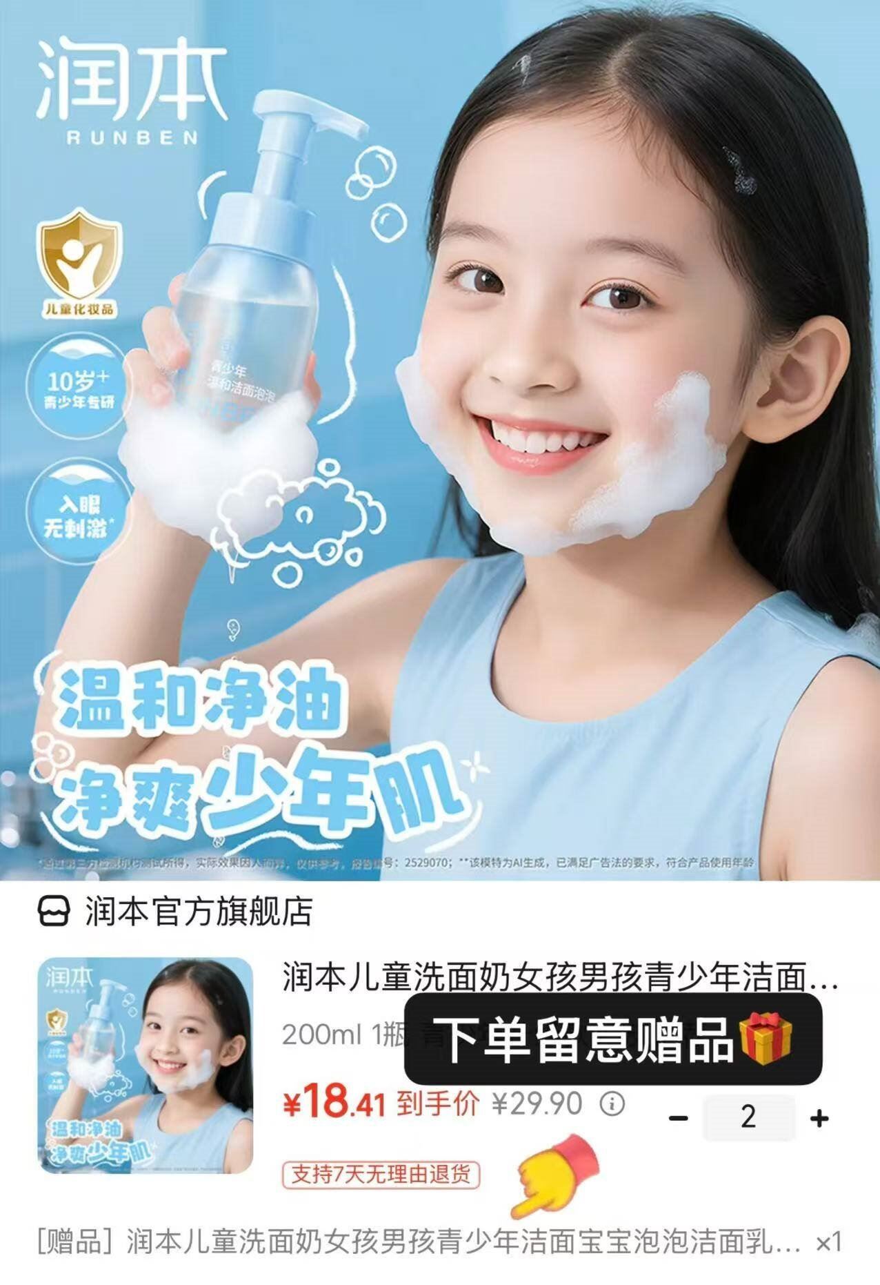 润本 升级歀青少年洗面奶200ml 买2件39.8元 Plus付36.8元