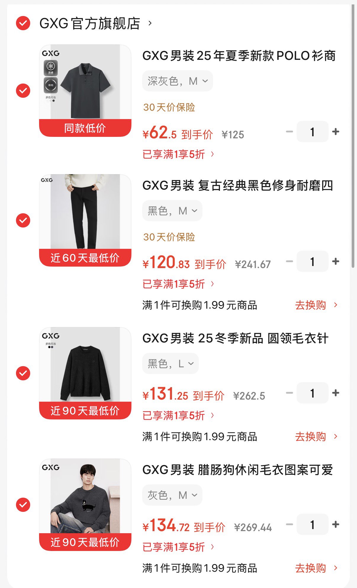 领5折券 GXG男装专区任选52元起 腊肠狗休闲毛衣 135元
