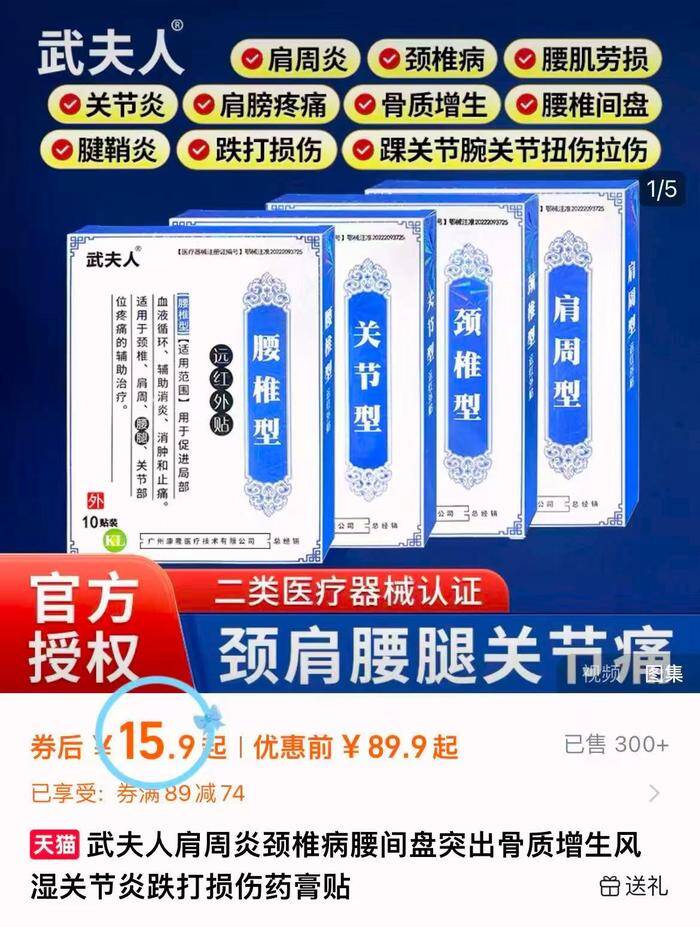 15.9元 武夫人 颈肩腰腿骨关节专用贴10贴 药监局备案