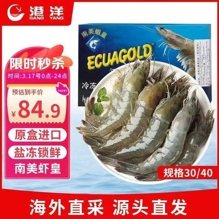 港洋 厄瓜多尔白虾 净重3斤 84.9元自营包U 3040规格