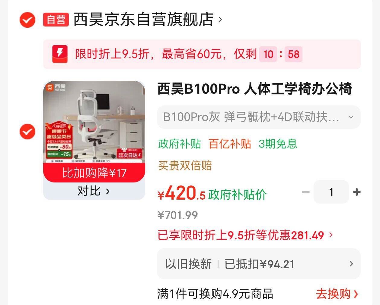 西昊B100pro 人体工学椅 2Plus超补券