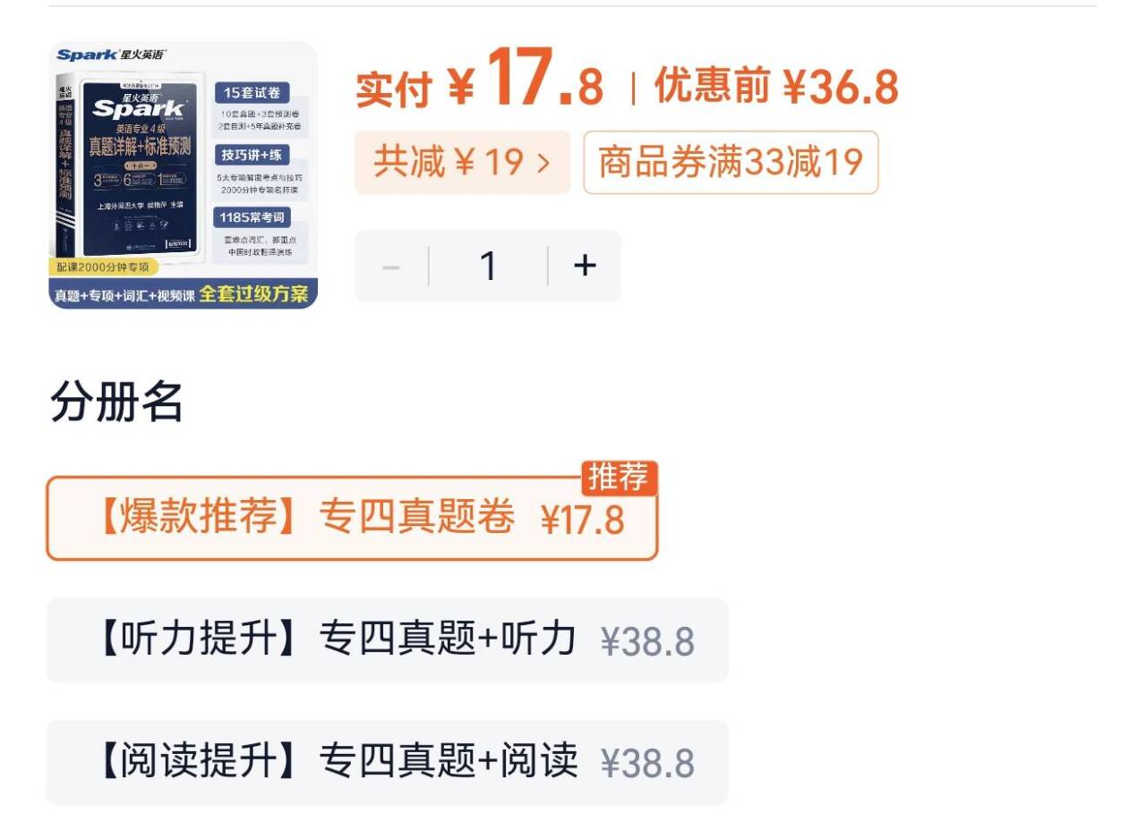 星火英语专四真题卷17.8元
