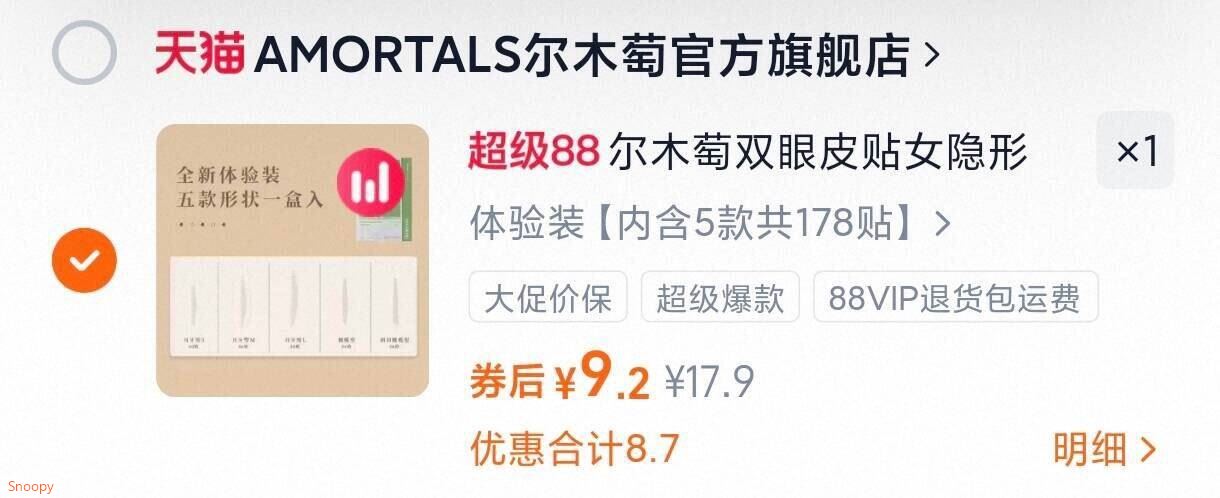 9元尔木萄双眼皮贴178贴 不反光翘边 睁眼闭眼自然满分 个位数拿下