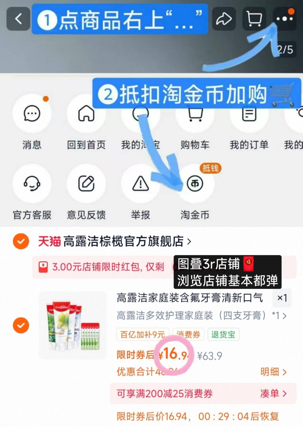 漏16.9元高露洁牙膏荬一送一 如图叠金币拍下神价 得正装牙膏8大支