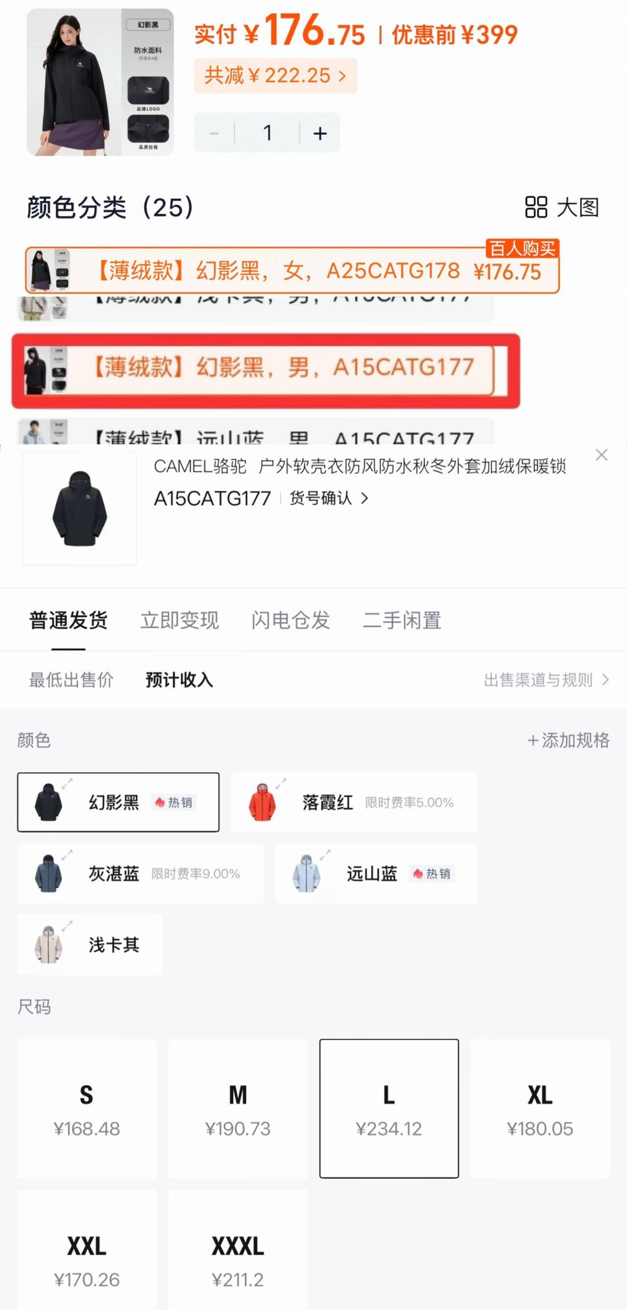 扴格成立 骆驼冲锋衣 領礼琻 肖費卷x0.95购物琻到手165 锝.物275
