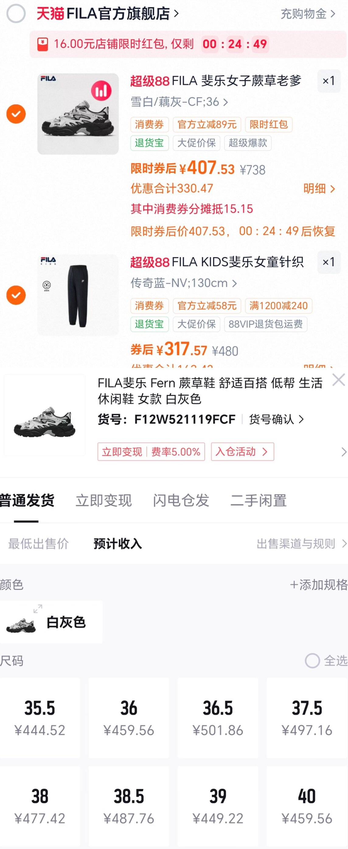 斐乐蕨草好车 領礼琻 叠加肖費卷到手400 购物琻到手376