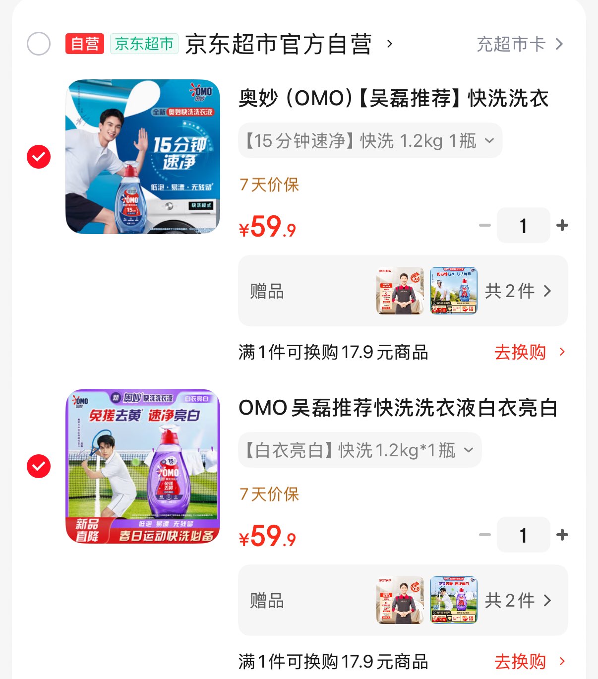 奥妙快洗洗衣液2.4斤 拍下59.9元 买1赠1共2瓶 再赠家政服务2小时