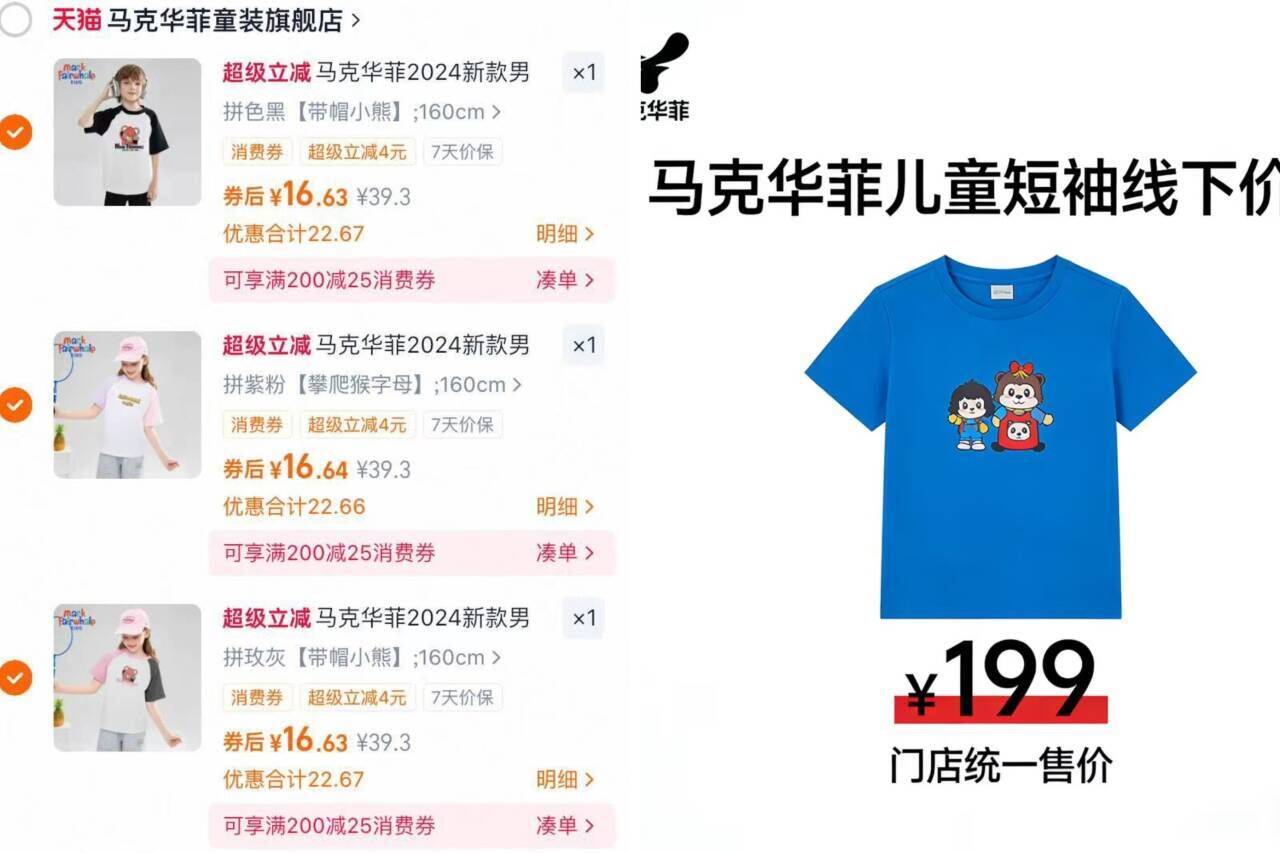 有漏 大lou 任选3件49.9元折16.6元/件 马克华菲 男女童纯棉短袖