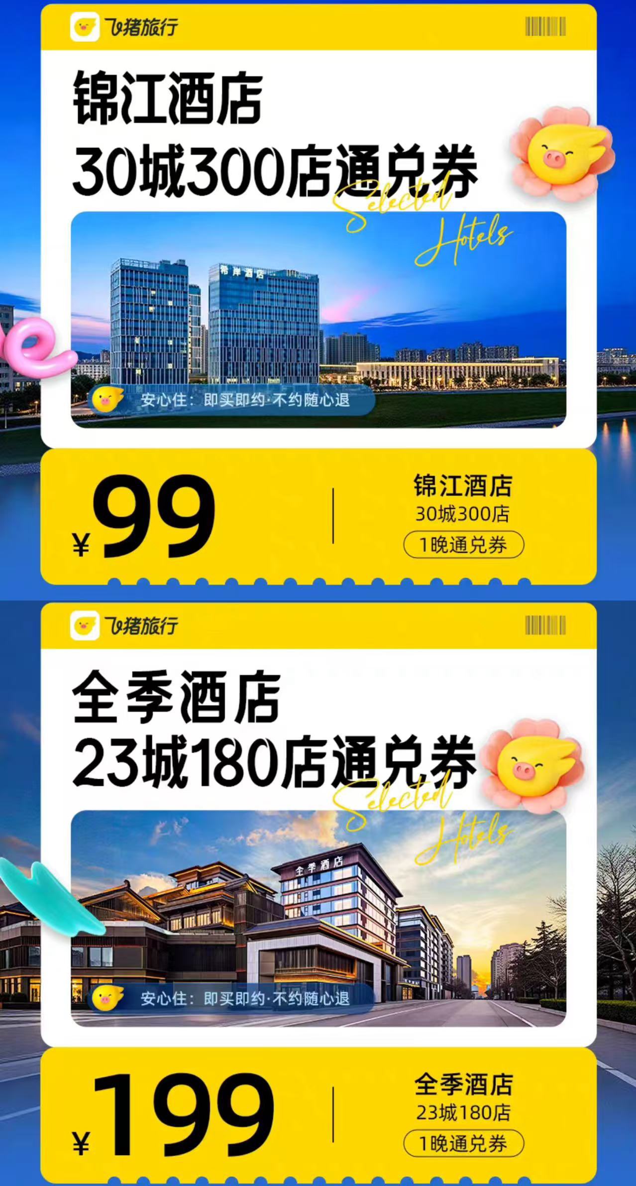 99元 锦江酒店30城300店 锦江酒店30城300店1晚通兑券 199元