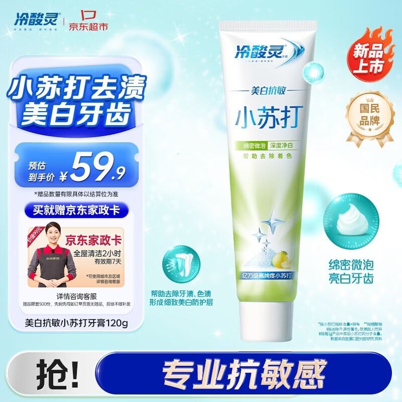 自营冷酸灵 抗敏小苏打牙膏 120g 拍下59.9元 赠JD家政服务2h卷