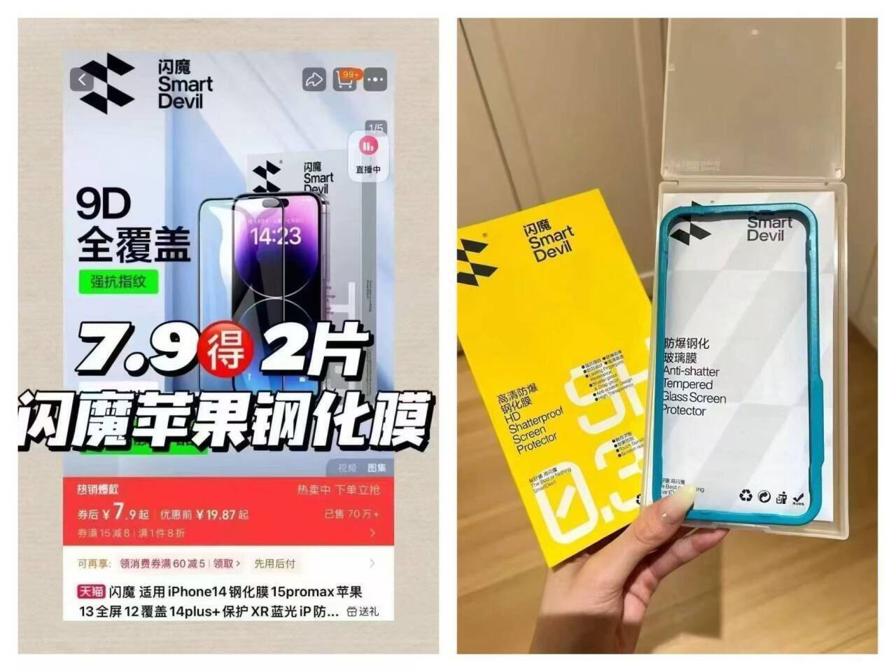 蹲闪魔钢化膜的姐妹在哪里 这次7.9元2片 10.9元3片 还配贴膜神器
