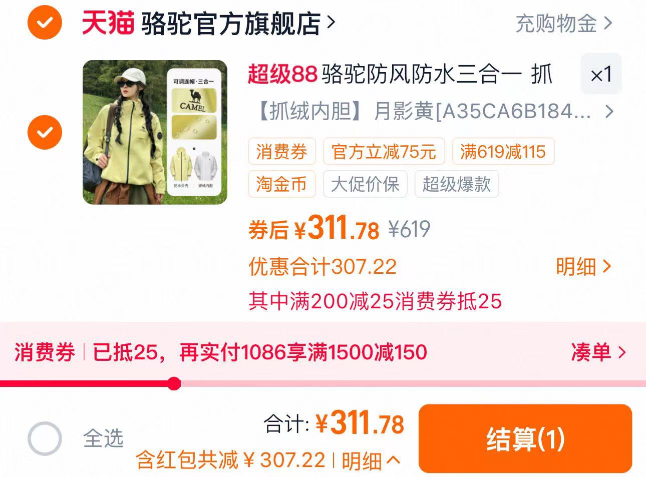 绘员可充够物金 到手296.8元