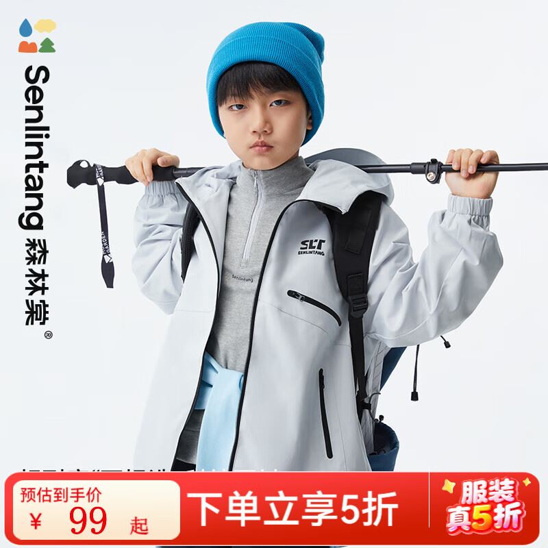 森林棠童装5折集 外简约三防风衣99元 椰子棉拼色卫衣49元