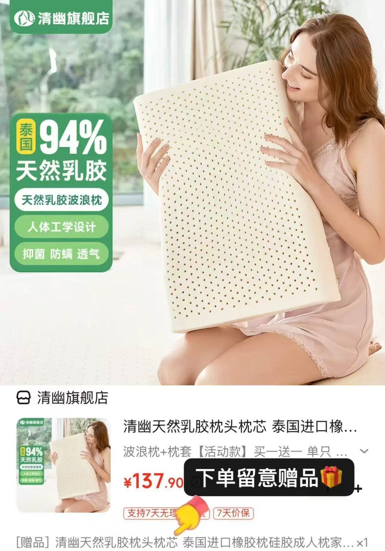 买1贈1 划算冲 清幽雅竹 天然乳胶枕枕芯1只 59.9元 贈同歀*1