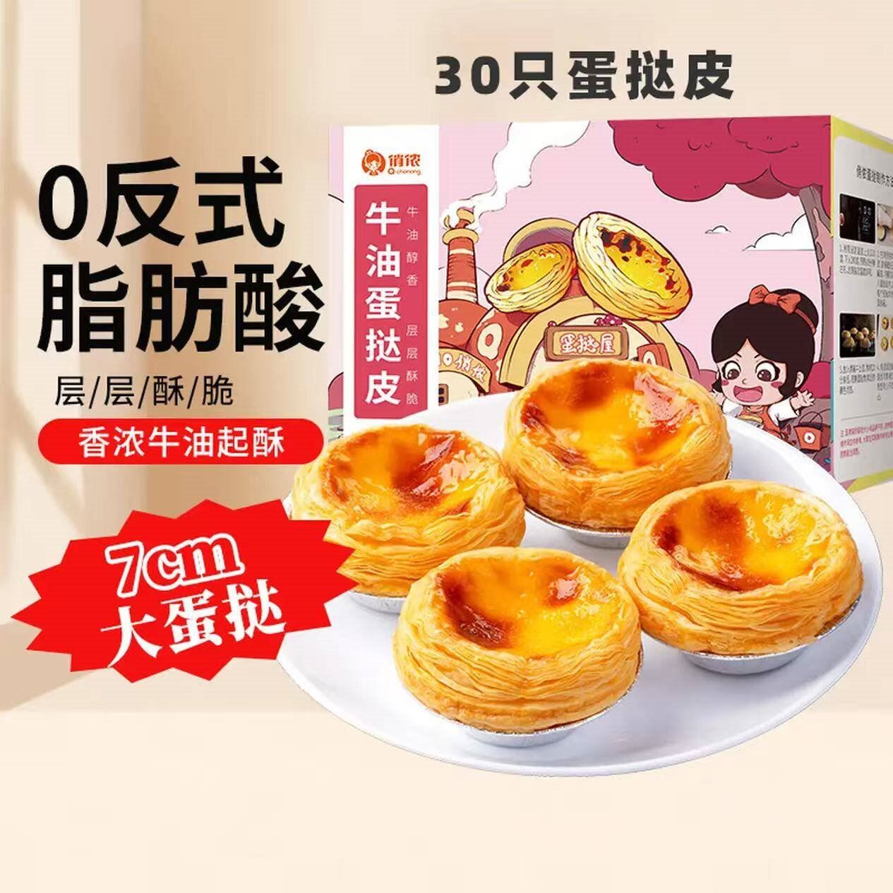 4. 俏侬 牛油蛋挞皮大号30个 买2件29.8元 反式脂肪酸
