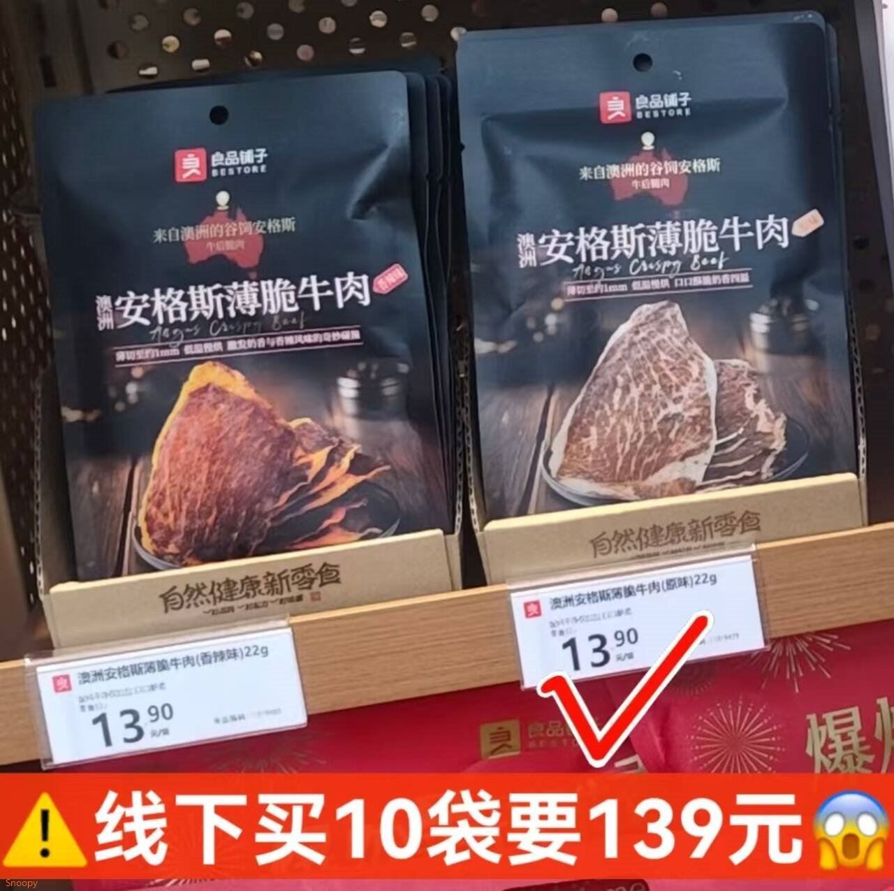 良品铺子 薄脆牛肉脆片220g 89元 安格斯牛后腿肉 添加