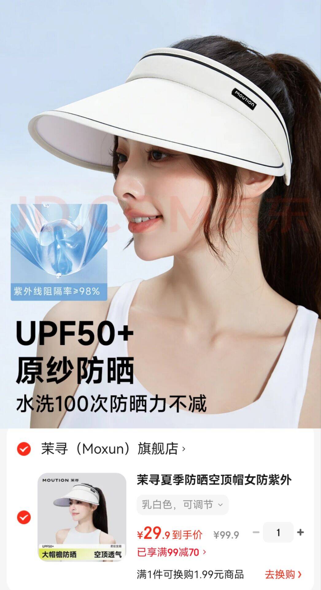 茉寻可调节防晒太阳帽 拍下29.9元 全脸防晒
