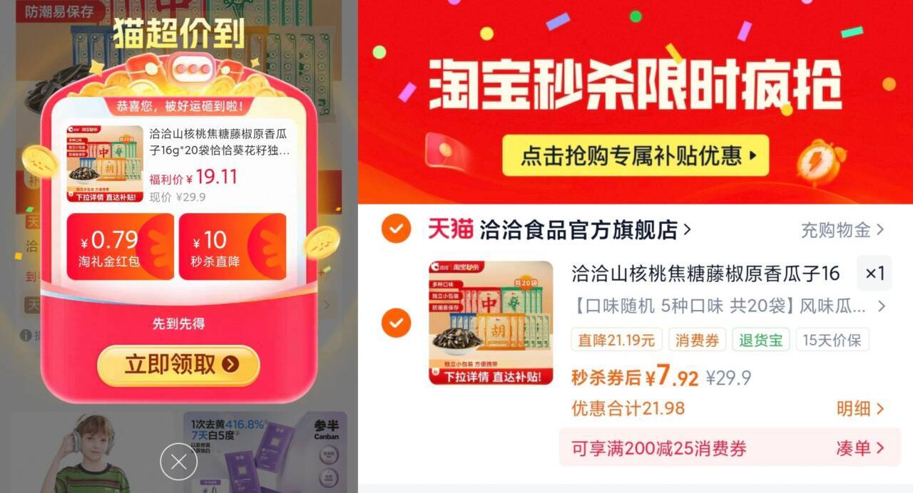 4. 突降 一包洽洽3毛多 李琻 下拉详情7.9元 洽洽.风味瓜子16g×20袋