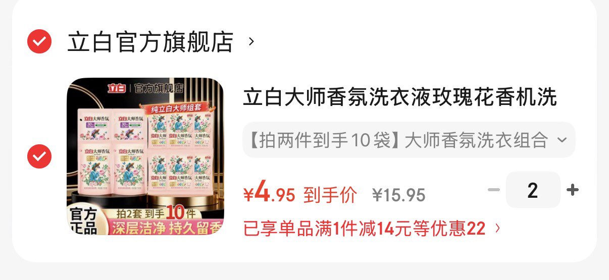 立白大师香氛洗衣液组合 2 件 9.9 元
