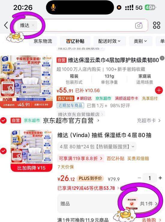 维达抽纸24包饭20津贴