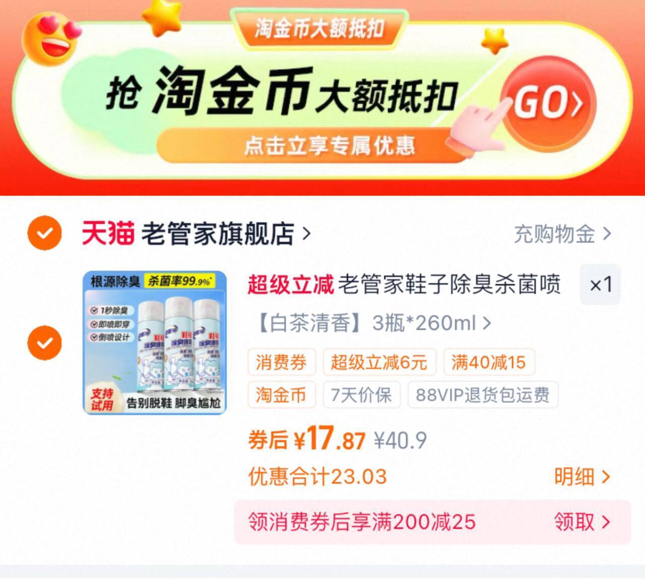 老管家鞋子除臭喷雾260ml 3 件 17.85元