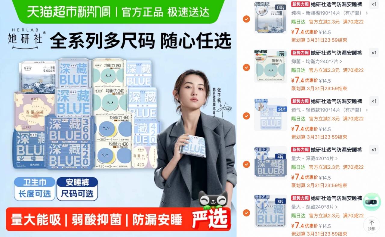 猫超X她研社卫生巾合集 5 件 39元