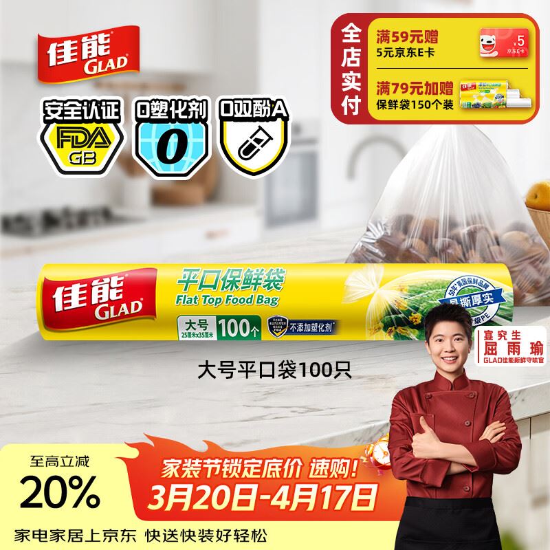 自营佳能 食品级保鲜袋大号100个 3 件 22.7元
