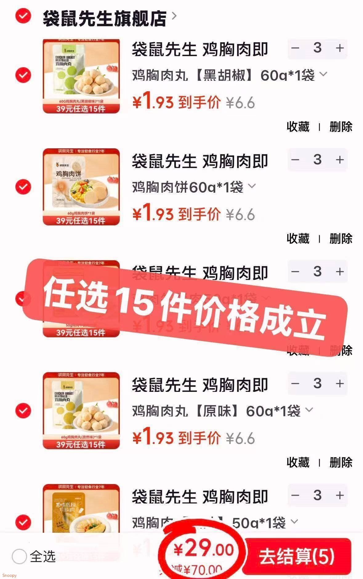 袋鼠先生鸡胸肉/肉丸/肉饼等任选15件 29元