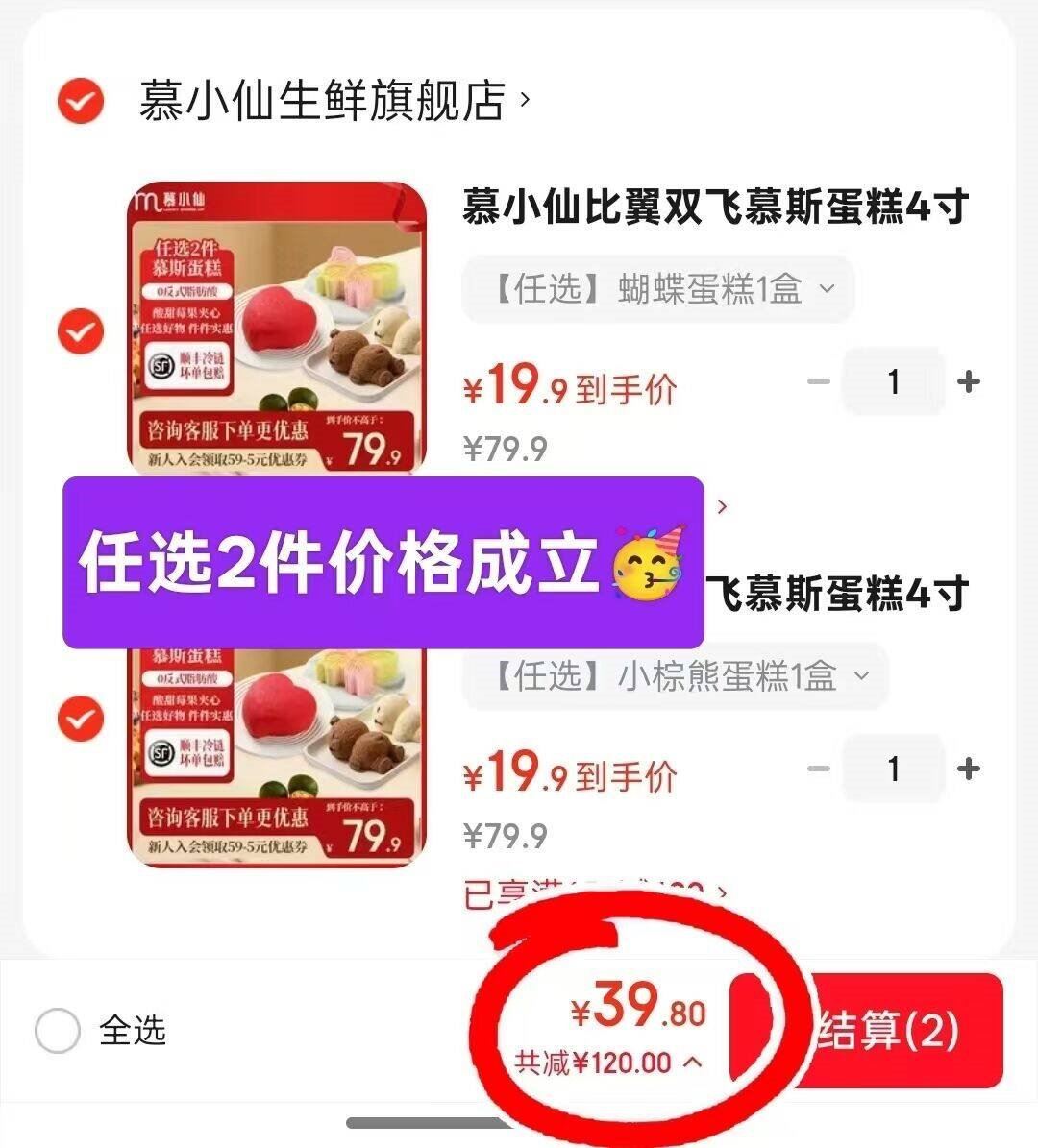 慕小仙动物奶油慕斯蛋糕4寸任选2件39.8元,还有瑞士卷300g*2盒19.9元