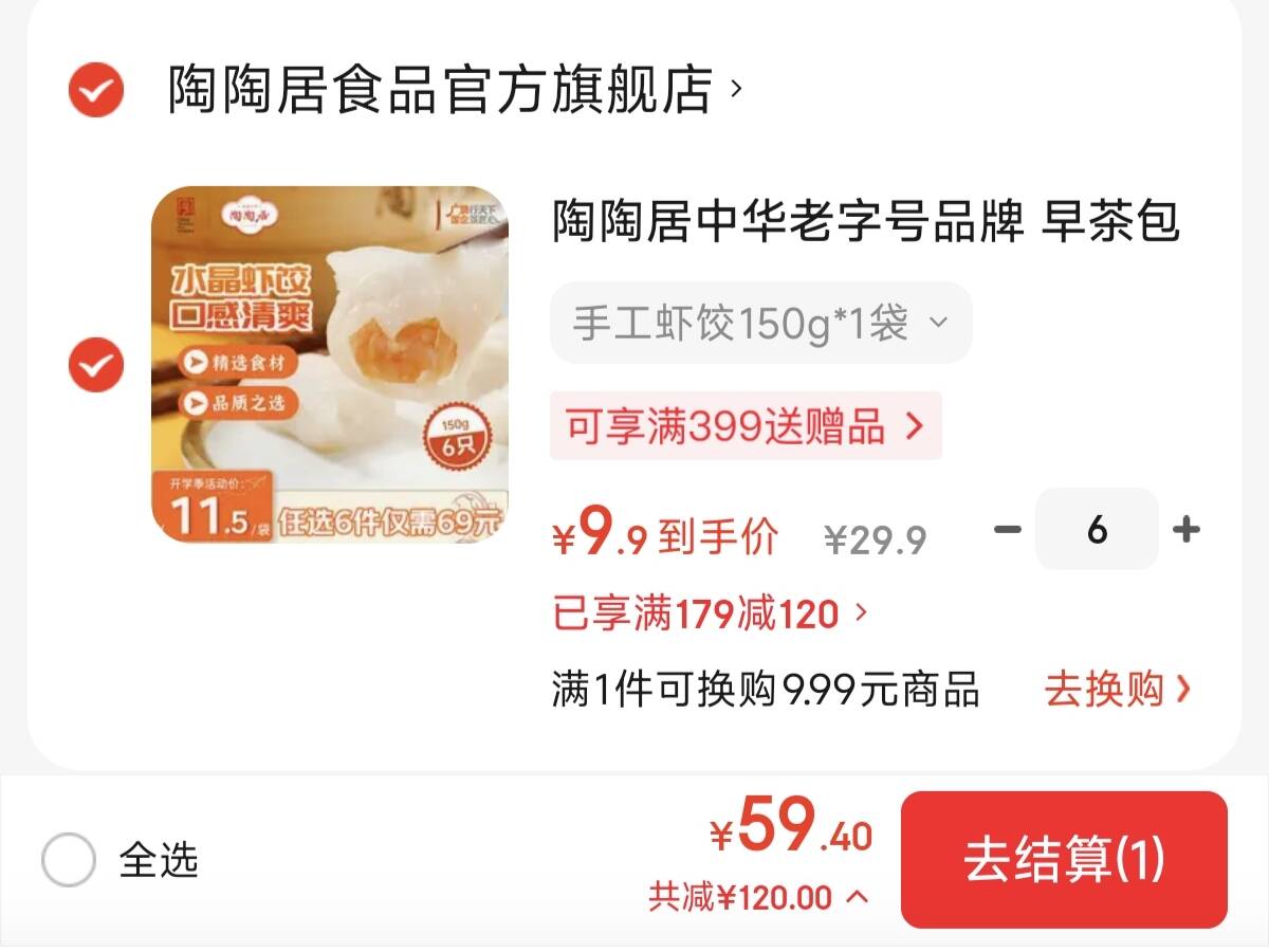 陶陶居手工虾饺150g 6件 59.4元