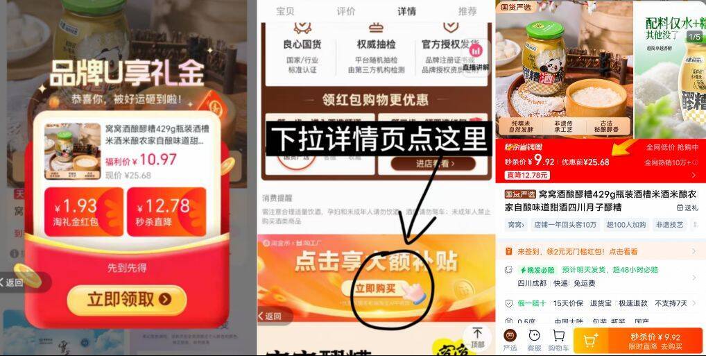 窝窝醪糟甜米酒429g×2瓶 9.9元