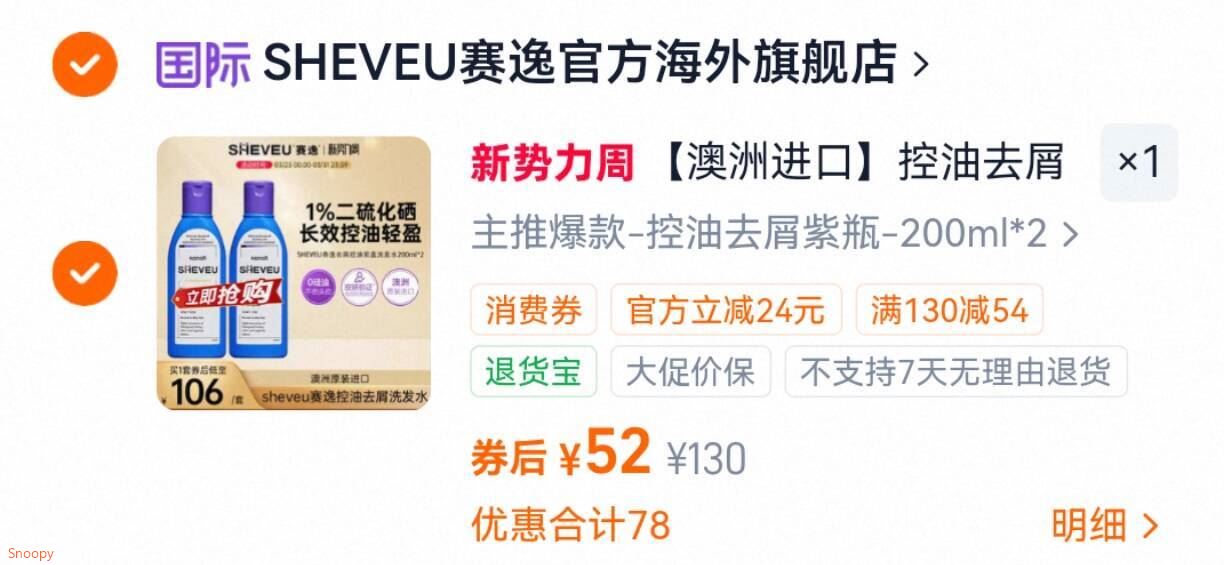 澳洲赛逸.洗发水200ml*2瓶52元