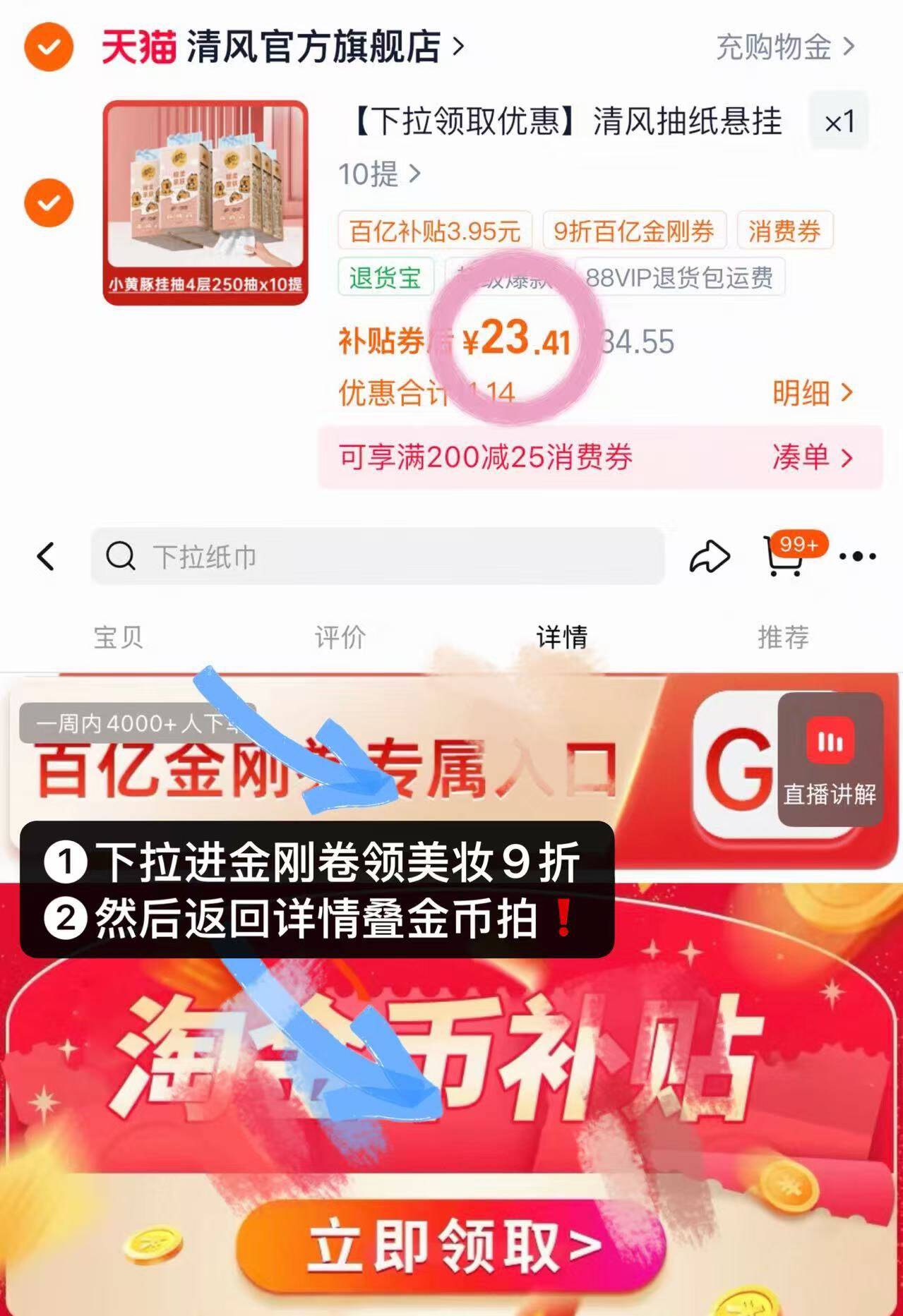 下拉详情进百卟领9折美妆倦