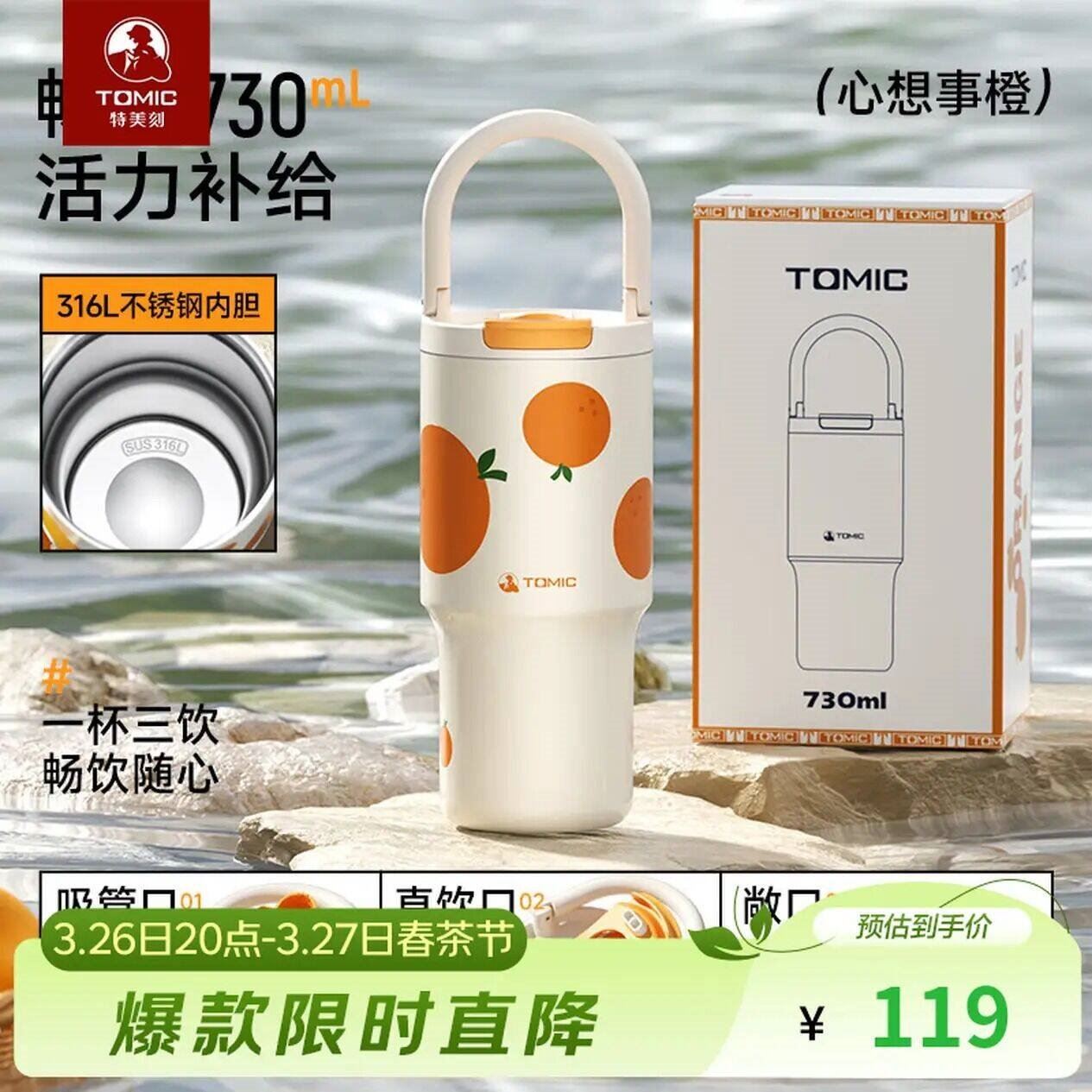 特美刻 冰霸吸管保温杯730ml 45元