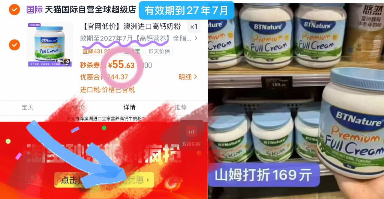 BTN蓝胖子奶粉1kg 55元
