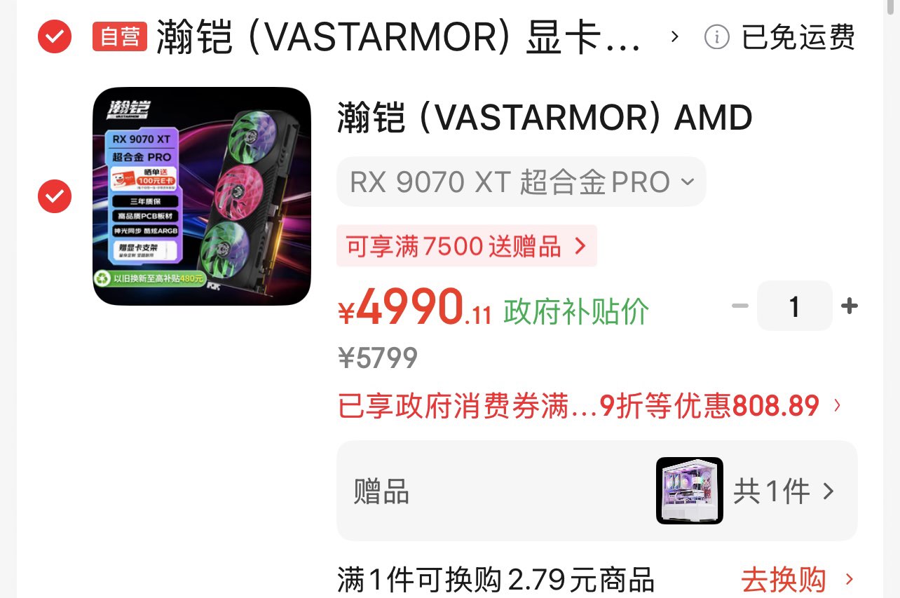 瀚铠9070XT 超合金 4890元