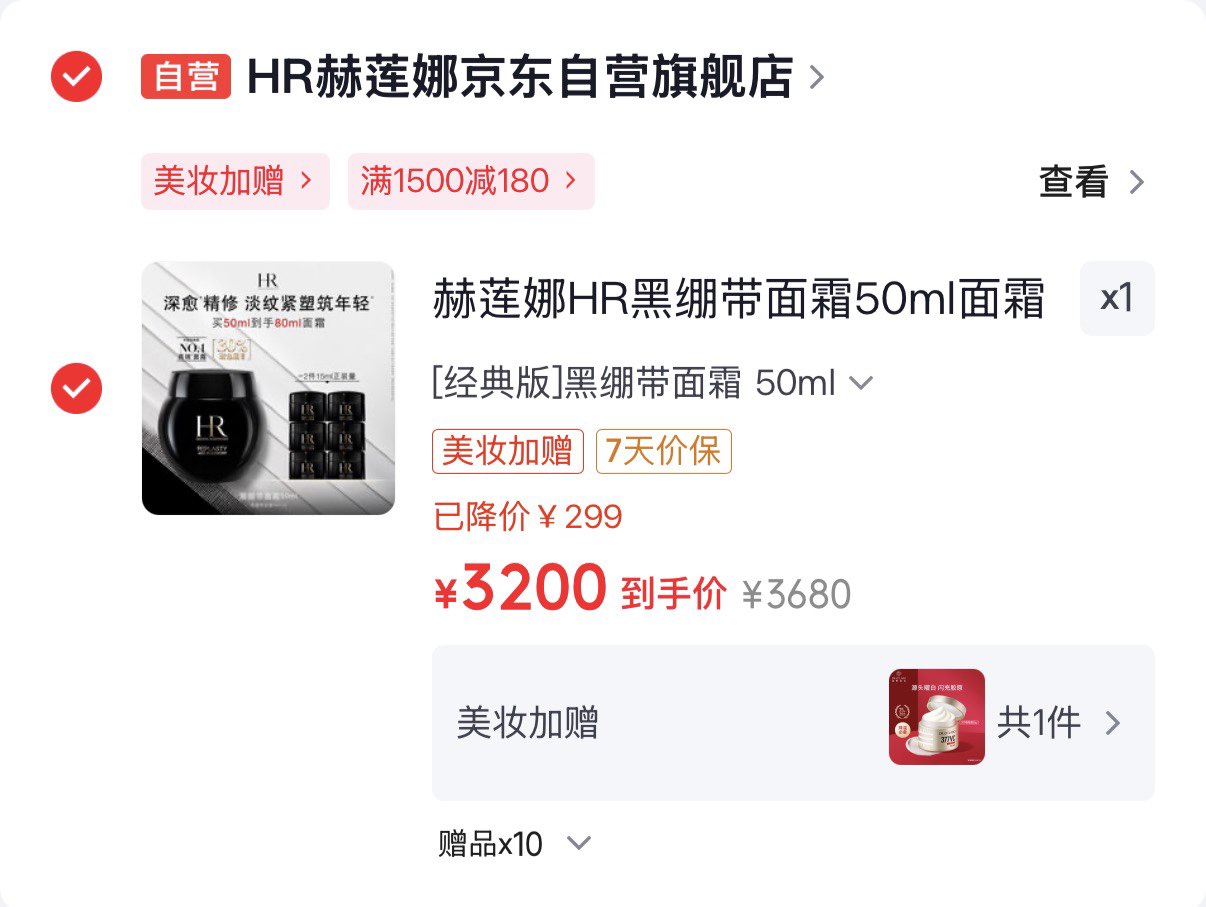 赫莲娜HR黑绷带面霜50ml 3200元