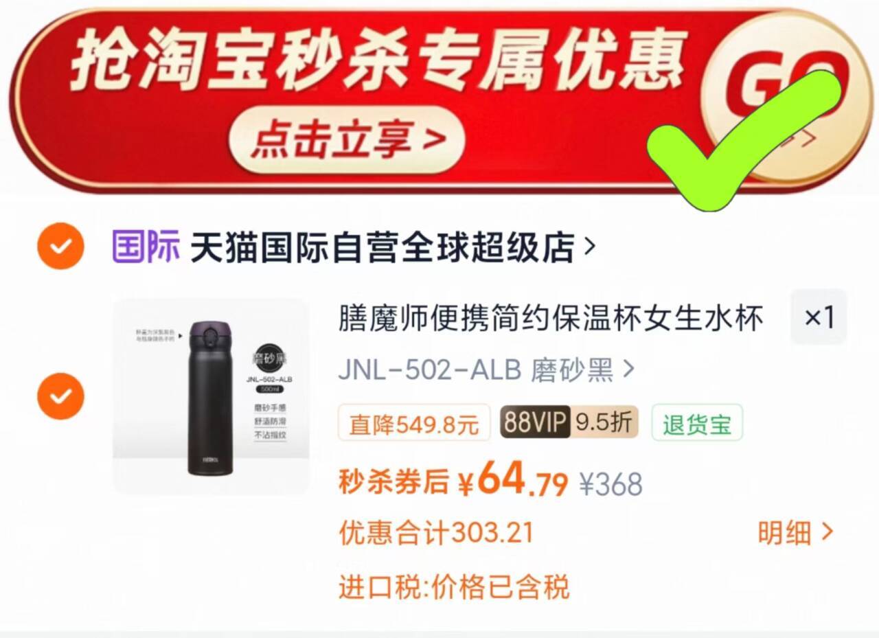 膳魔师500ml保温杯 64.7元