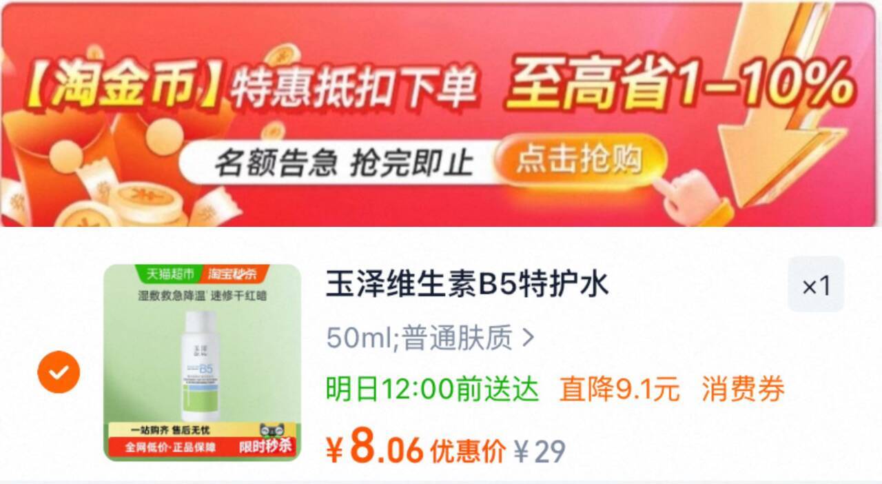 玉泽维生素特护水50ML*1瓶 8元
