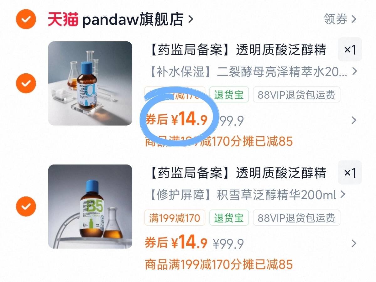 潘达精华水200ml任选 件29.8元 折14.9/瓶 多款 修护/抗皱/舒缓/补水