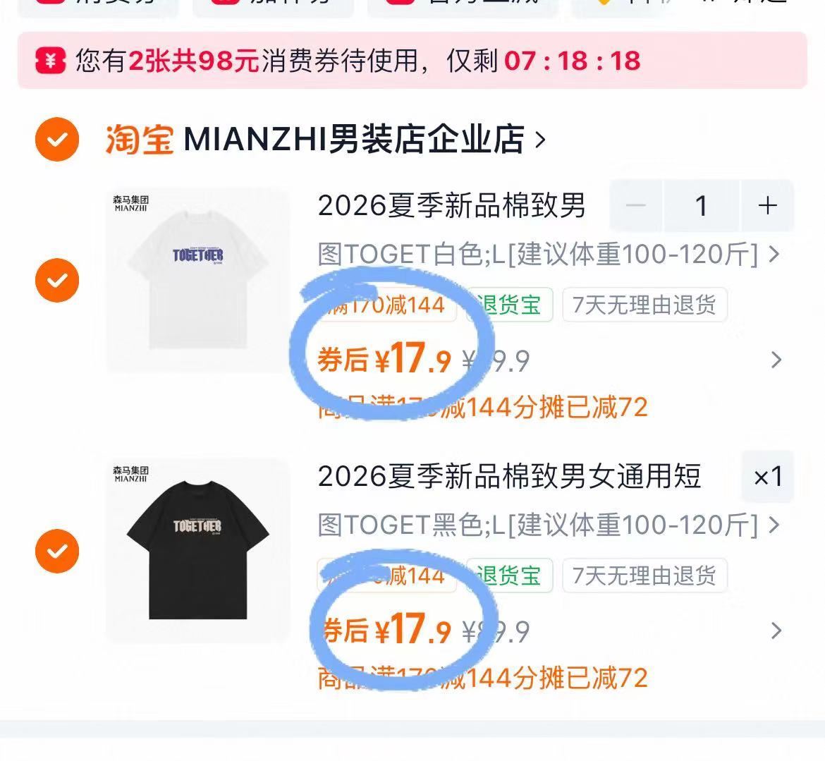 森马棉致重磅纯棉短袖 35.8元