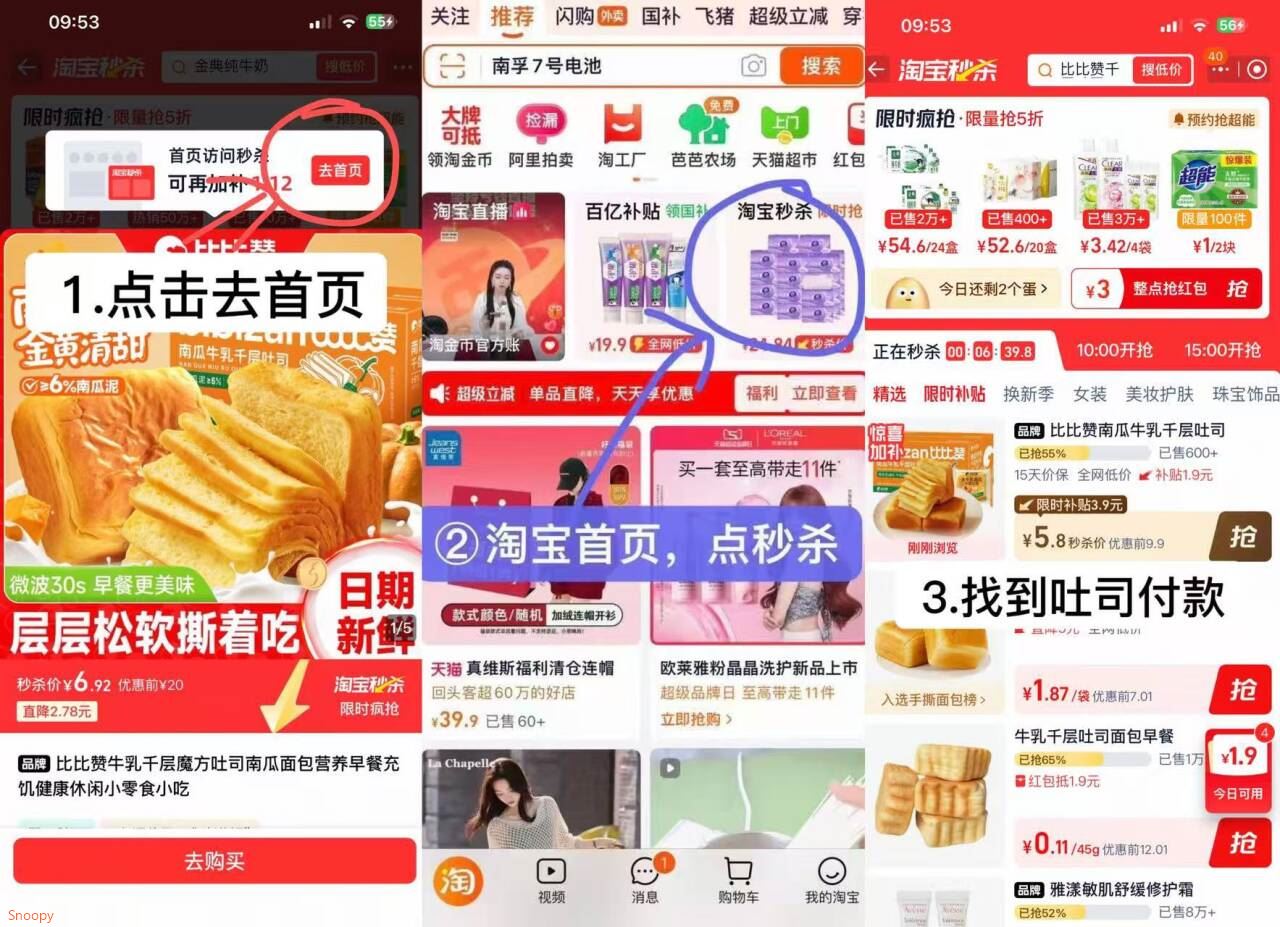 比比赞牛乳千层吐司 拍1件5.8元 共6包 折0.9/包