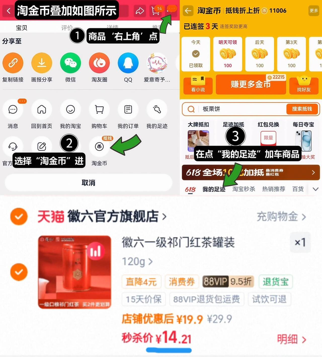 ①如图点右上角3个点,选淘金币