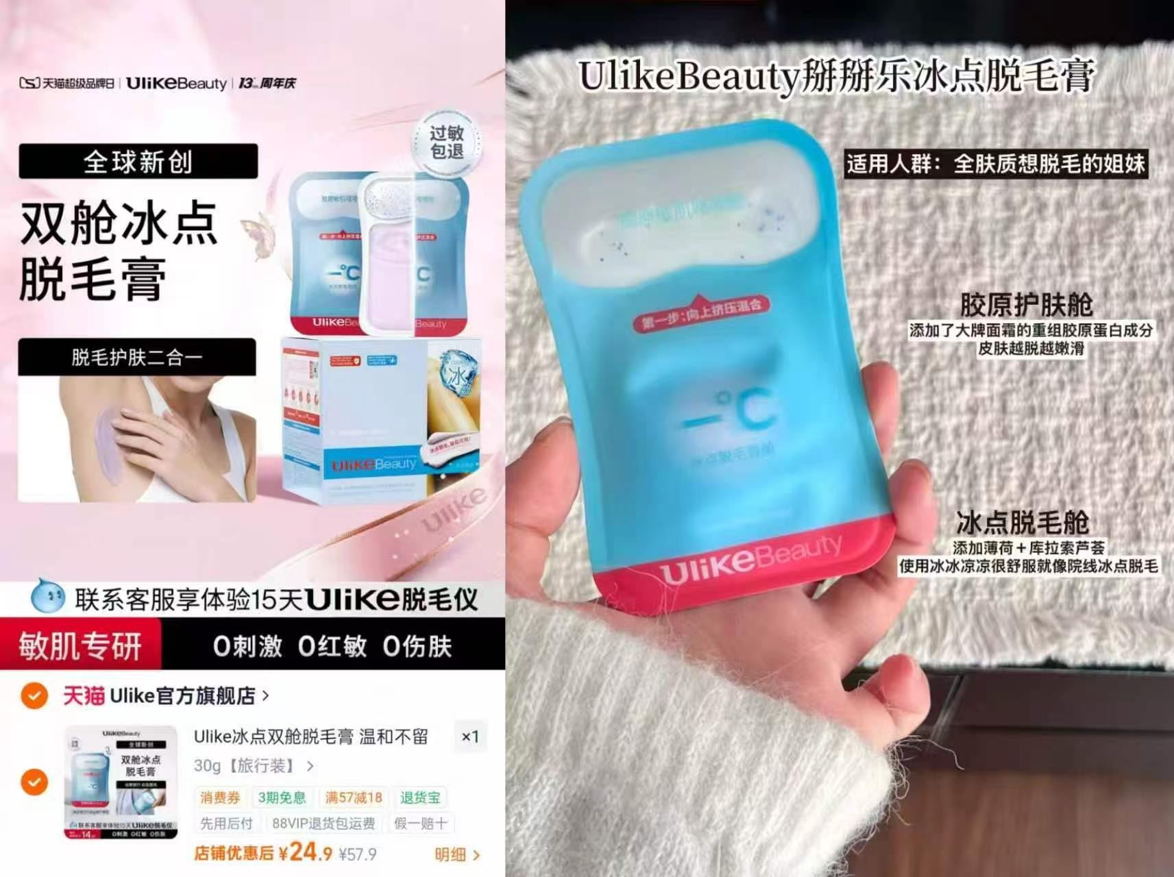 Ulike双舱冰点脱毛膏10g*3袋 24.9元