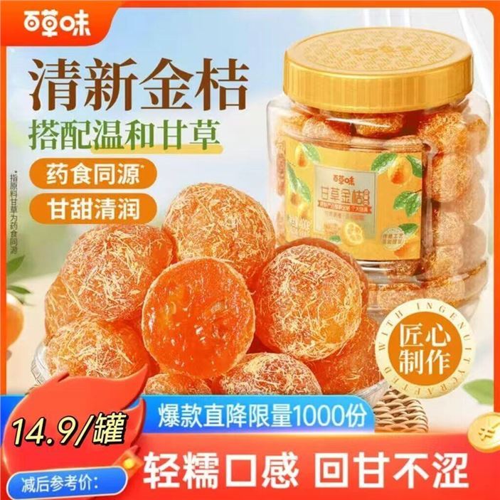 百草味甘草金桔400g/罐 买2件29.8元