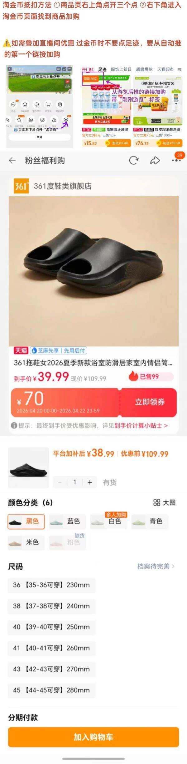 361°软弹系列黑武士男女同款防滑拖鞋 38.9元
