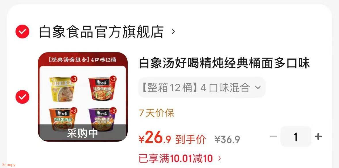 白象精炖经典红烧牛肉方便面整箱12桶4口味混合 26.9元